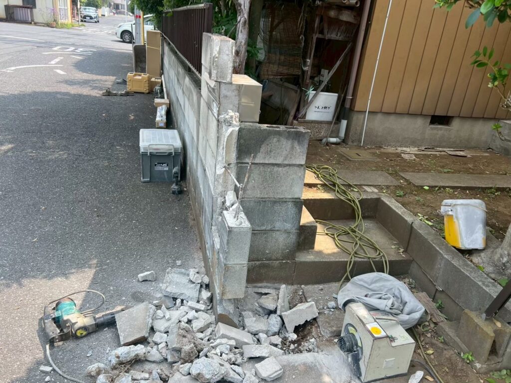 施工内容越谷市個人宅 ブロック塀の修繕工事・伸縮門扉の交換